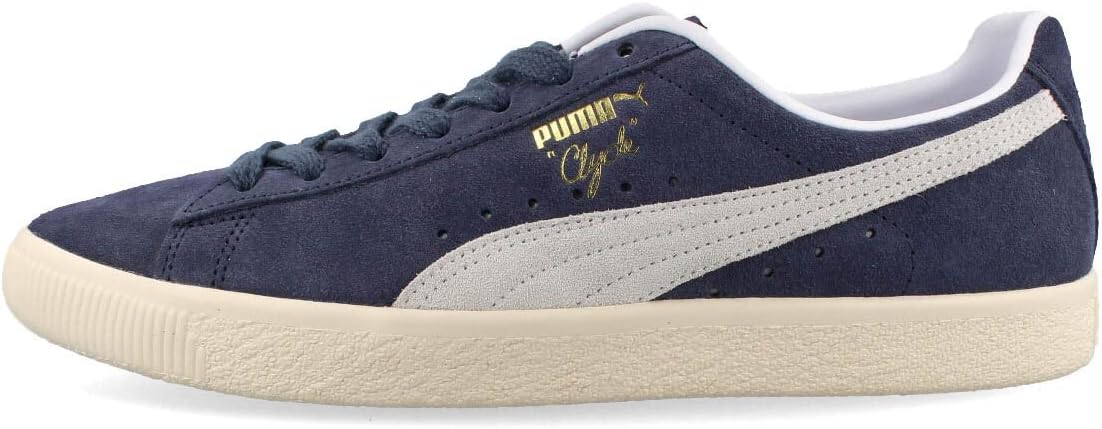 CLYDEってバッシュで最初のシグネチャーモデルなんだよね。元々トレシューだったのを、Walter "Clyde" Frazier(ウォルト・”クライド”・フレイジャー)って言う人が俺の靴だつってCLYDEを作り上げた感じ。そっからPUMA SUEDEができたからめちゃくちゃSUEDEと似てるけど、こっちが元祖だね。ちなみにこのネイビーはオリジナルカラー。